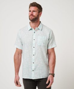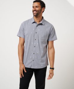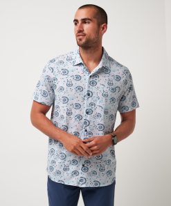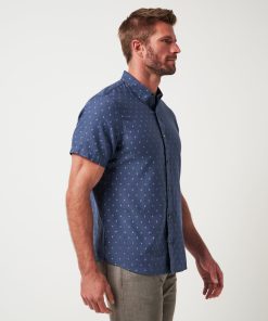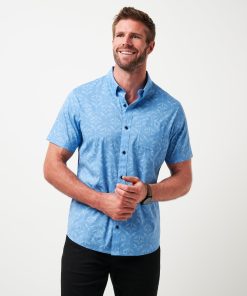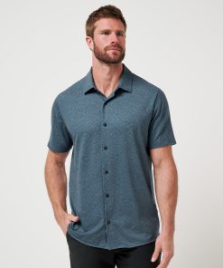 TravisMathew Men’s Tops Knit Featherweight Tides Button-up | Mood Indigo & Vintage Indigo