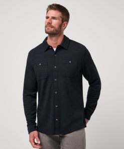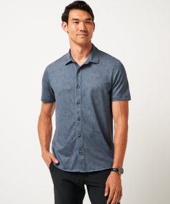 TravisMathew Men’s Tops Knit Featherweight Night Button-up | Mood Indigo & Vintage Indigo