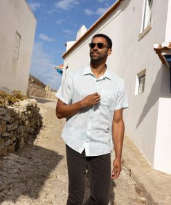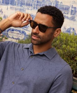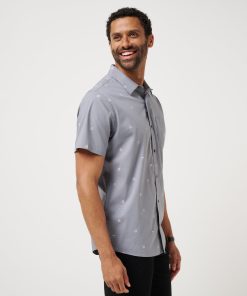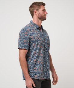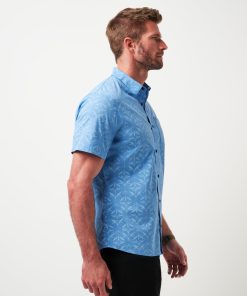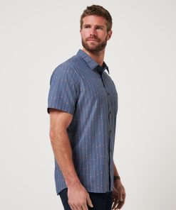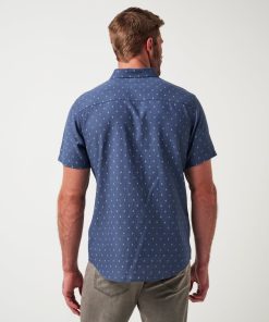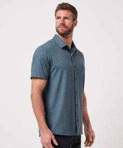 TravisMathew Men’s Tops Knit Featherweight Tides Button-up | Mood Indigo & Vintage Indigo