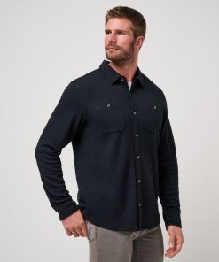 TravisMathew Men’s Tops Knit Featherweight Night Button-up | Mood Indigo & Vintage Indigo