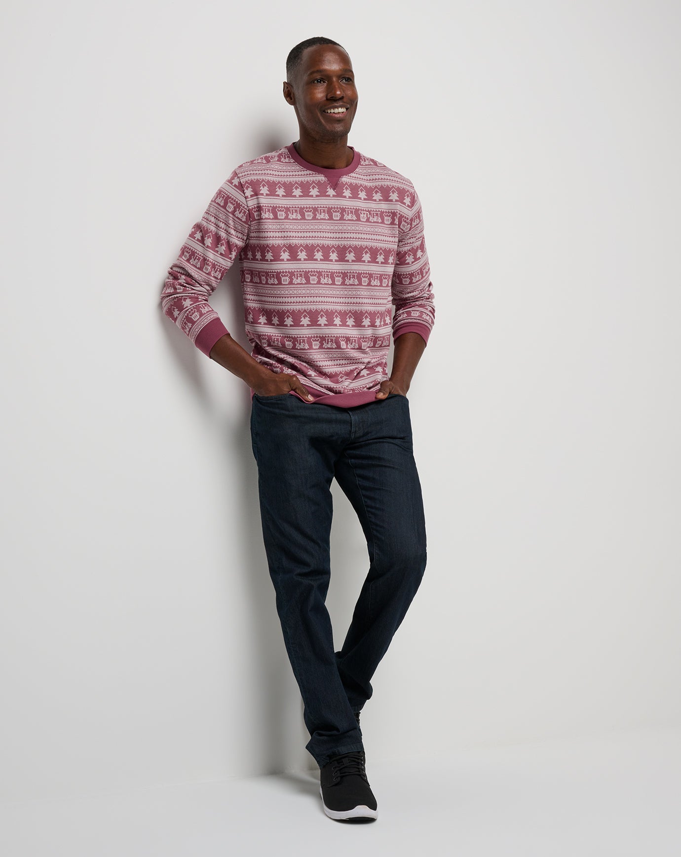 Printed with an all-over jacquard design of pine trees, festive drinks, and our iconic golf cart graphic, you can count on the FAMILY TIME crew neck sweater to get you in the holiday spirit faster than your favorite cheesy movie of the season.