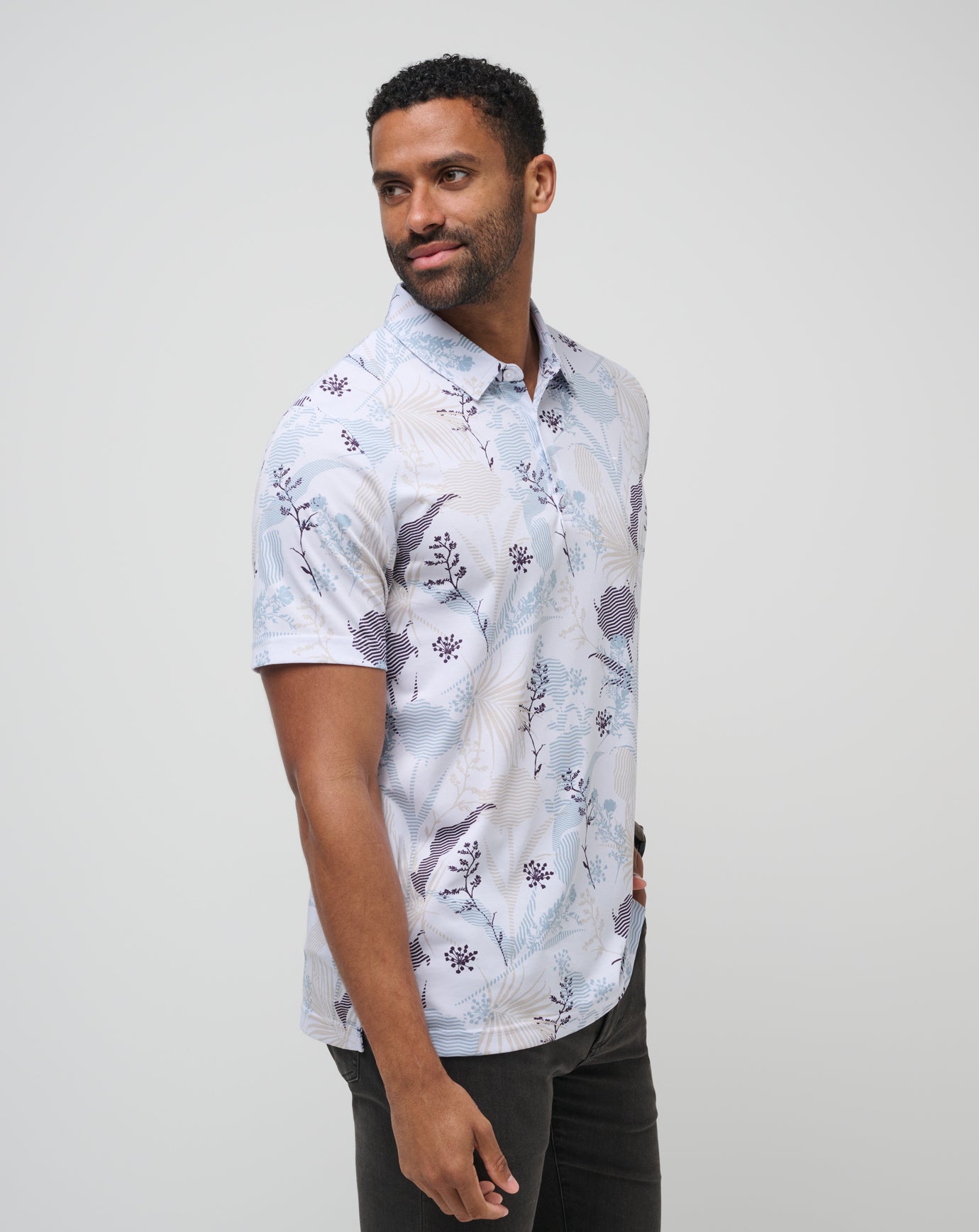 Turn your daily look into a TROPICAL FUSION with a polo made for turning heads. Designed with a pattern of colorful, eye-catching florals mingled with subtle stripes, don’t be surprised when your style steals a little attention from the scenery.