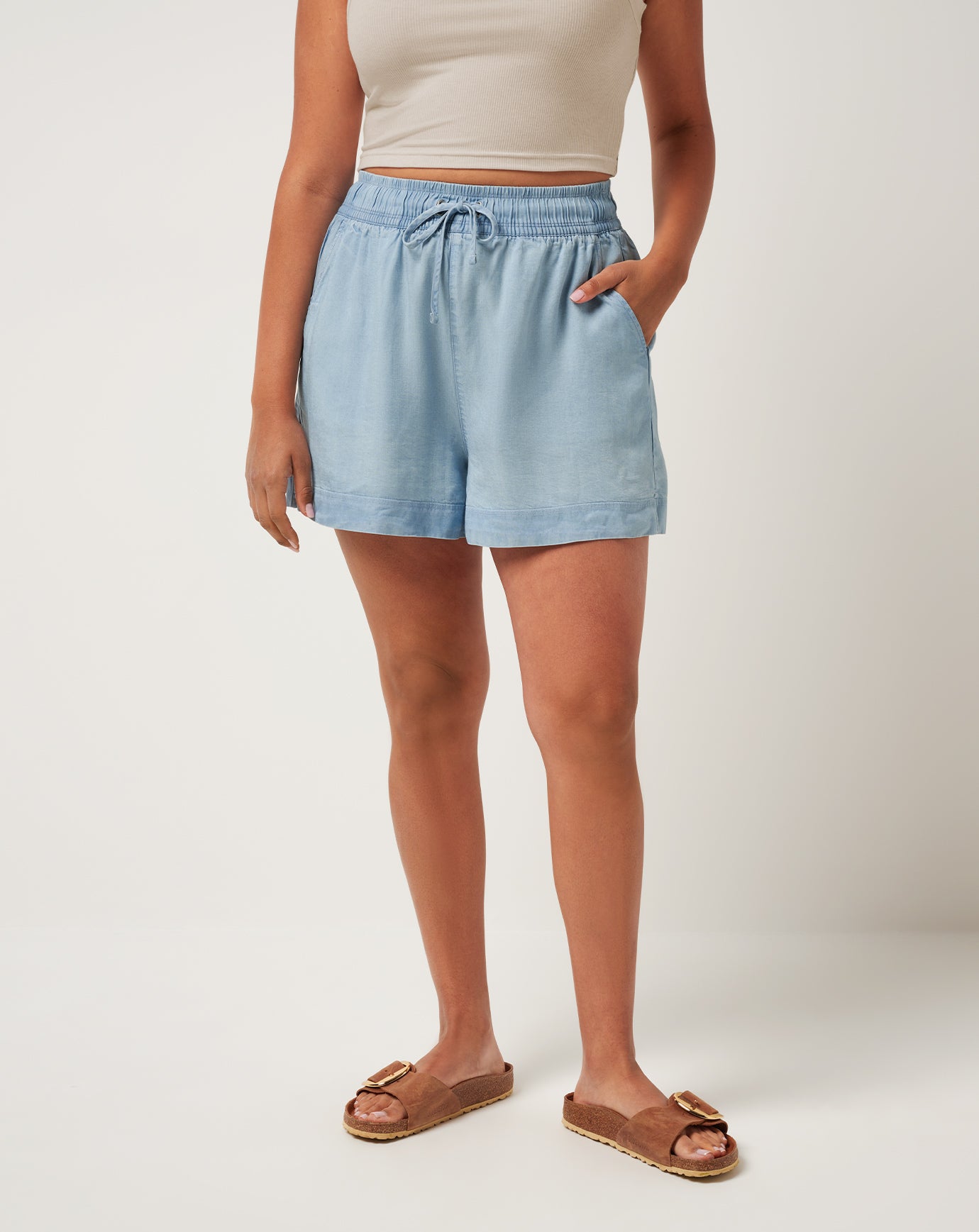 The CHAMBRAY SHORT is what summer dreams are made of. Crafted from ultra-lightweight chambray with a relaxed fit and high waist, these shorts are equally at home on a beach day or out to brunch. Pair them with the Chambray Button Down for a matching set that feels as effortless as a warm breeze.
