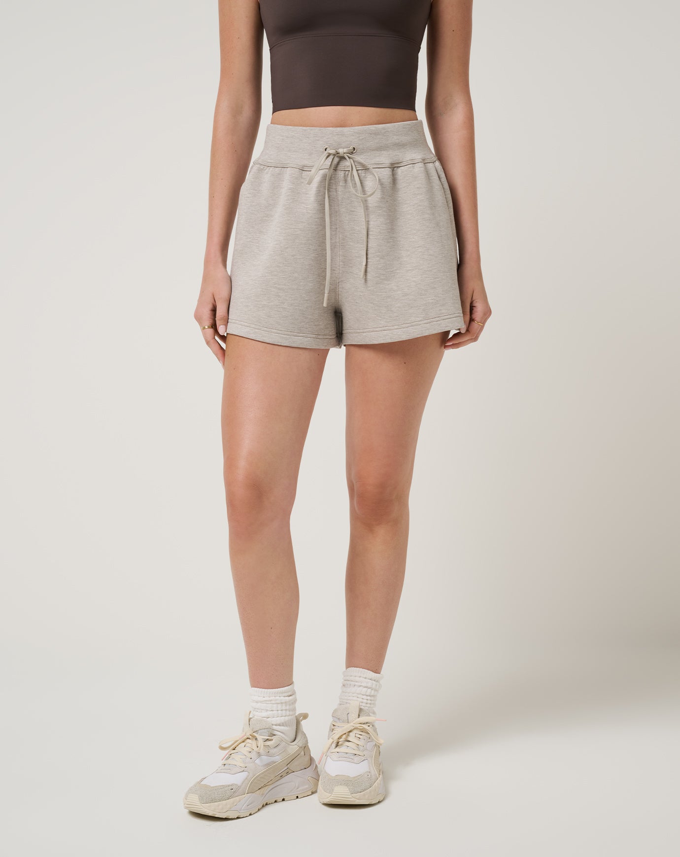 A soft short with just enough structure to feel styled. The CLOUDSCAPE SHORT is high-rise and flared, made from our new scuba fabric that feels smooth, supportive, and ready for real life. Toss them on over leggings, pair with a tank, or wear them solo for that quick-out-the-door energy. Complete the look with the CLOUDSCAPE PULLOVER.
