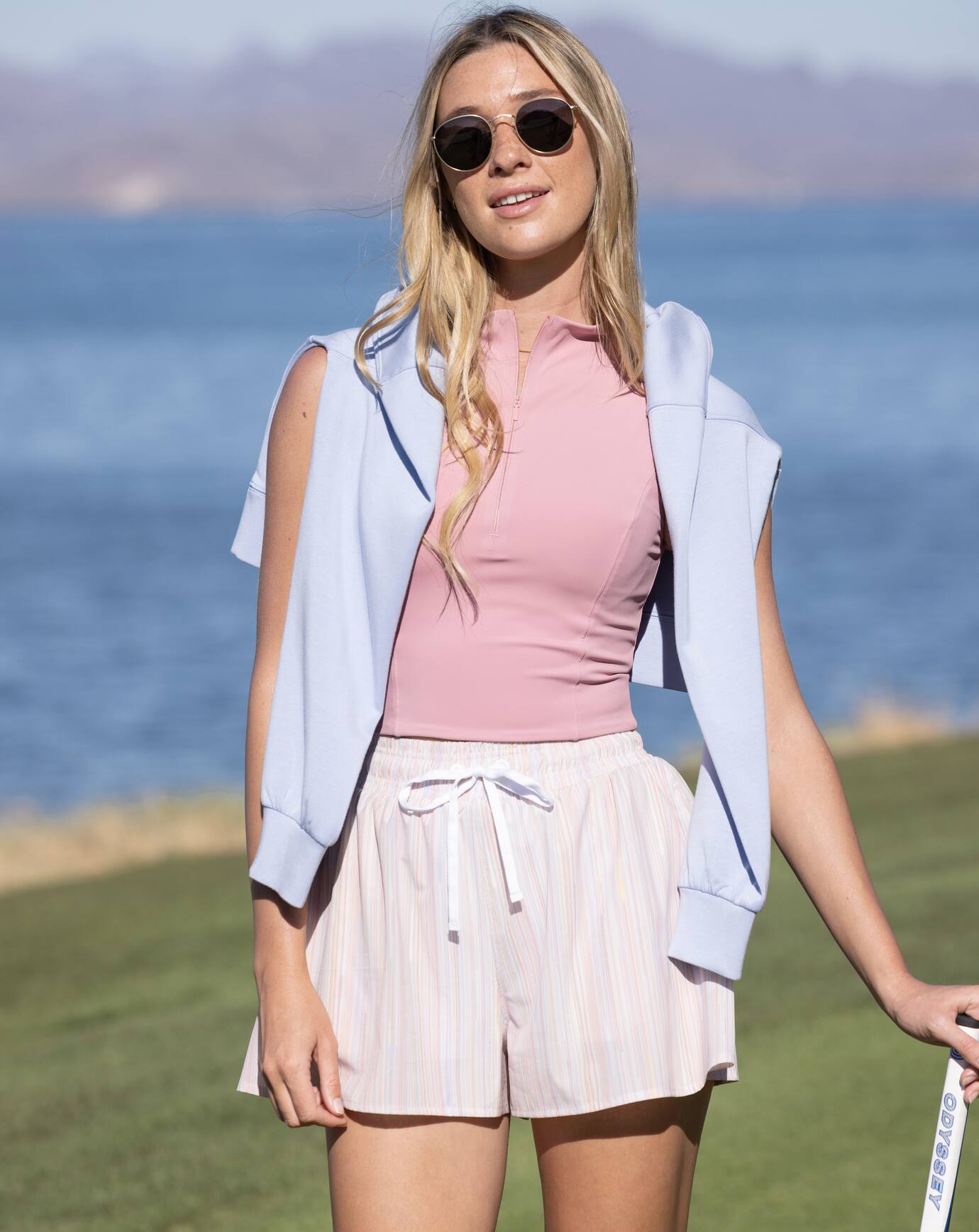 The perfect balance of function and style. The SHIFTING SANDS SHORT 2.0 gives you the look of a skort with the mobility of shorts, thanks to a lightweight, breathable overlay and a built-in shortie underneath. The slightly longer short length adds coverage while the flare silhouette keeps things on-trend. Whether you’re playing pickleball, out for a run, or just keeping it casual, these shorts move with you.