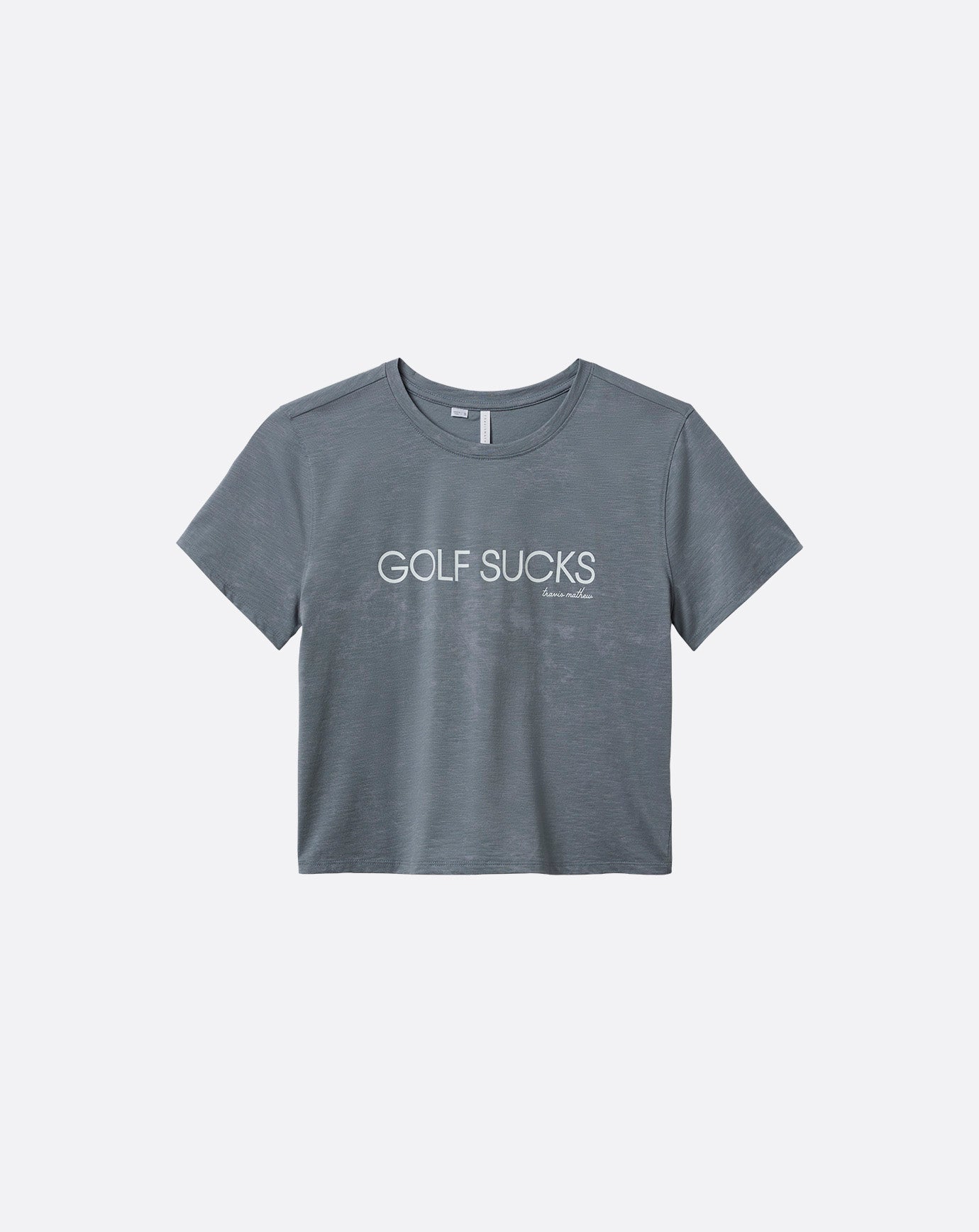 Show off your “love” for the game with the MUSINGS women’s t-shirt. Whether you’re frustrated from your last over par round or just trying to send a message, our “Golf Sucks” graphic will get the job done. Designed with a modern, slightly cropped silhouette, you can be as confident in your look as you are in your game.