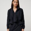- Textured zip peplum jacket / relaxed fit / interior pocket on wearers left chest/elastic waistband