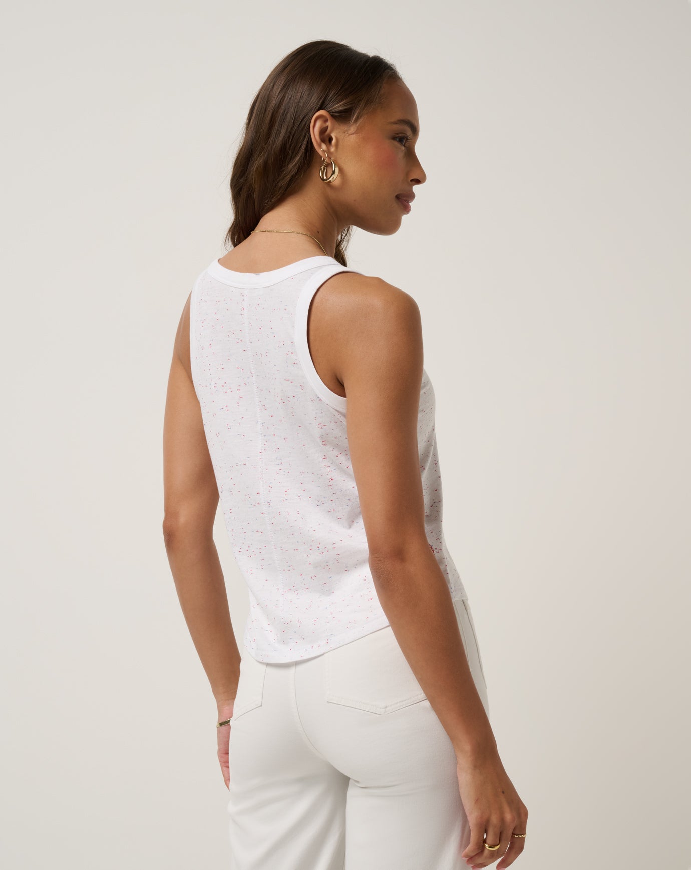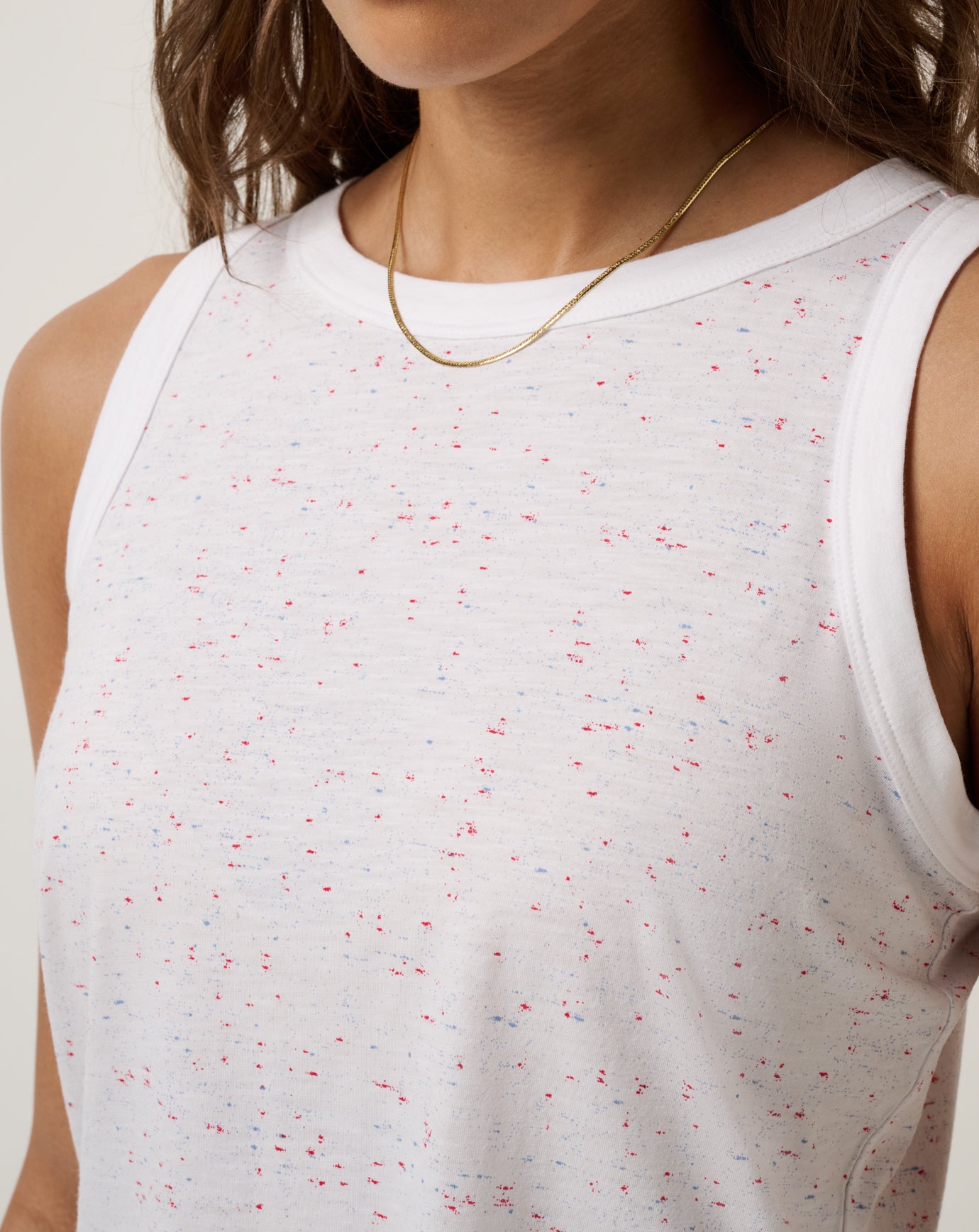 The search is over. The perfect tank is right here, and we’ve given it a makeover for the Fourth of July, featuring red, white, and blue speckles. No seriously, the WONDERSTRUCK 2.0 tank is made from our signature lightweight Cloud fabric, which means it’s got plenty of stretch and just enough stability to hold its shape all day long. Dress it up, dress it down. No matter how you dress, the racerback shape and delicate scoop hemline makes this one versatile little number for all your summer plans.